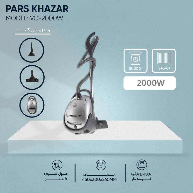 جاروبرقی 2000 وات پارس خزر مدل VC-2000W